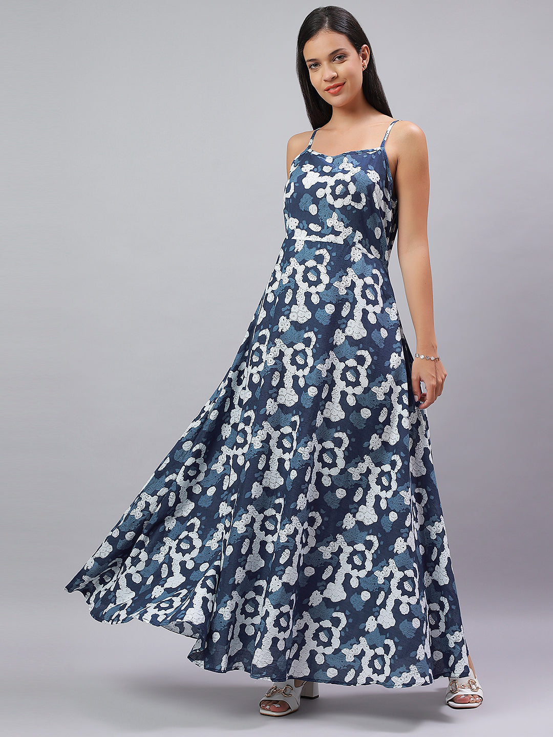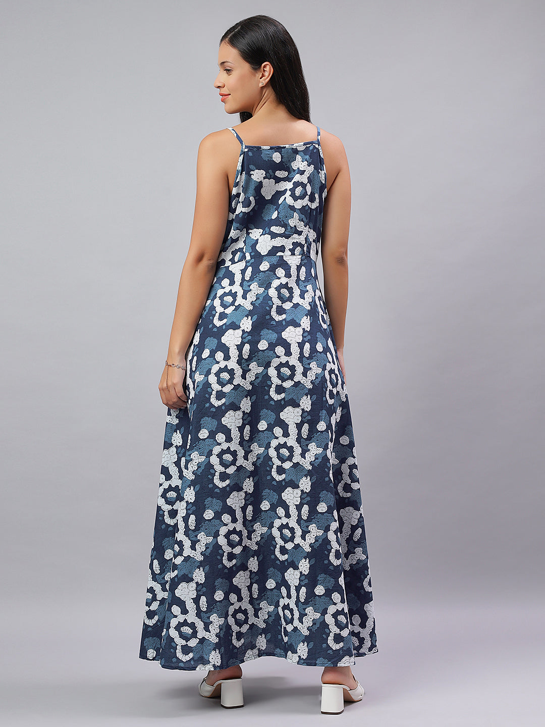 This Indigo-printed long dress is your summer MVP - cool, chic, and made to move. Dressy enough for a dinner, comfy enough for a casual day out. Layer it with a jacket or wear it as is, Aarohi pairs best with minimal accessories and maximum confidence.